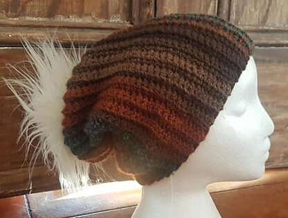 This Slouchy Beanie works up Beautifully and looks amazing on! This pattern could easily be adapted to use another weight of yarn. I have also designed this hat to range in sizes from Toddler up through to Large Adult.