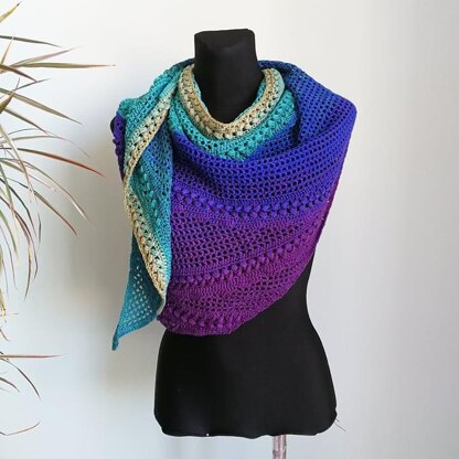 The Rallidae Shawl is available as a single pattern both in US and UK crochet terms. A little piece of chart is added to help you get started smoothly. Written pattern in English.