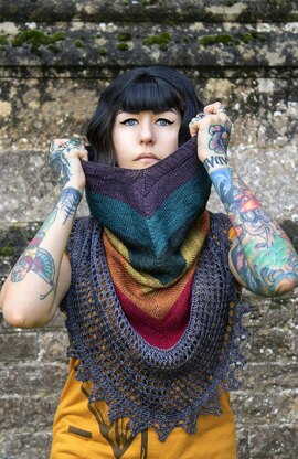 Ramble On is named after one of my favorite Led Zeppelin songs. I really wanted the creative chaos of their music to be reflected in this design because their brazen spirit and energy embodies what I love when it comes to yarn, pattern creation, and life in general. This cowl is knit from the top down, starting with the chevron stripes. Extra stitches are cast on at the bottom to work the lace panel using short rows, which travel all the way around the hem. Afterthought ribbing around the collar accentuates the v neck shape for a polished finish. This piece has so much versatility! Wear it up as a hood or down as a cowl, choose a traditional rainbow configuration or shuffle the colors into a random hodgepodge, go dark or bright or earthy, the possibilities are endless!