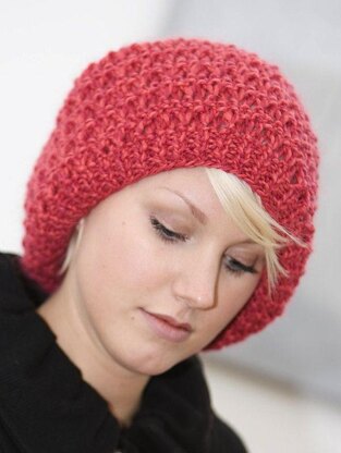 This slouchy style hat is perfect for a beginner knitter as there’s very little shaping involved plus basic knit and purl stitches to create a moss stitch texture