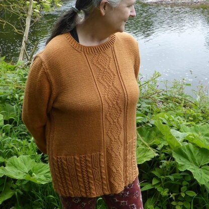 This sweater features deep columns of small cables and Japanese stitch patterns rather than traditional ribbing to make it stand out from the crowd.