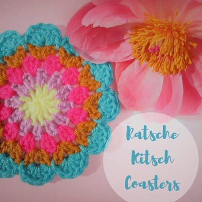And give your scrap yarn a new purpose! ;) A super fast and easy pattern for real kitschy coasters - let your inner kitsch-lover tell you which crazy colors to combine and swoon over the lovely results! You need to be able to do a Magic ring, slip stitches and double crochet (US).