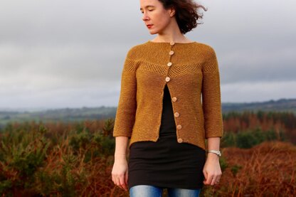 Simple lines and sleek shaping make this a must-knit cardigan. Knit in two directions; work the short row yoke from side to side and then work the body down from there. Fun finishing touches are worked with a short row hem curve.
