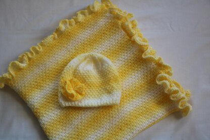 Ray of Sunshine Baby Blanket with Ruffle Hat.