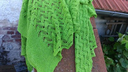 Rayo wird seitwärts gestrickt. Ein nicht zu weiches Garn in light fingering Stärke (450 m bis 600 m / 100 g) halte ich für gut geeignet.