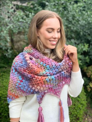 You can create your own beautiful crochet wrap featuring the Granny Ripple Stitch to make the most of the wonderful colour of the suggested yarn - Sidar Jewelspun. Supporting video tutorials to help you complete this sophisticated shawl which will brighten up any outfit.