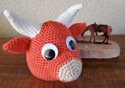 Crochet this cute eyeglass holder with worsted weight yarn, a little stuffing, and some plastic googly eyes. Add a piece of pipe cleaner to the ears for easier shaping. Make a few for your next craft show. Change the color, horn color, etc. for different looks. The possibilities are virtually endless!