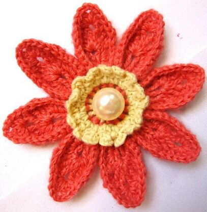 Decorate your clothes, bag, etc with nice red flower; continuous crochet without sewing. This is stiffened by spray starch, it can be wash and re-starch. Gauge does not important; you can use any yarn you like. It’s so easy and quickly, you can make it in only 30 minutes. You can also glue it on a safety pin/hair-grip to become brooch/hair-grips, it can easily be change depend on variety occasion. Simple but cute. Hope you enjoy it :)