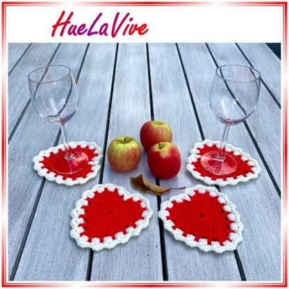 Coaster size is about: 5.2 X 5.2” (13 X 13 cm), and they are shaped as a heart doily.
