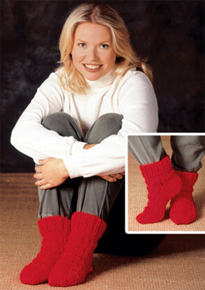 Red Hot Slipper Socks in Lion Brand Wool-Ease Thick & Quick - 1200AD