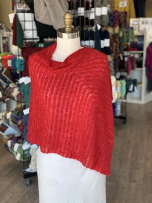 The Red Sea Poncho is a light weight, easy to wear statement piece - perfect for a night out or as a lightweight topper on a cool summer evening. It is knit modularly in one piece. There is only one seam at the shoulder. You will be doing short rows on the back, but there are no wraps and turns necessary.