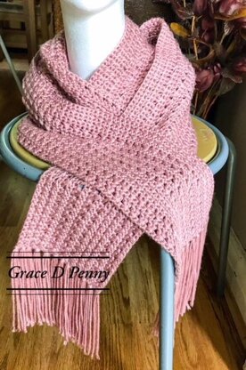I first used the pattern for a chunky scarf with several colours and then wanted to see what it would look like in one colour with a softer yarn. I used Caron Simply Soft Victorian Rose for the softer version and I love the way it falls and drapes.