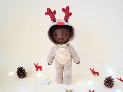 He has a removable reindeer onesie.