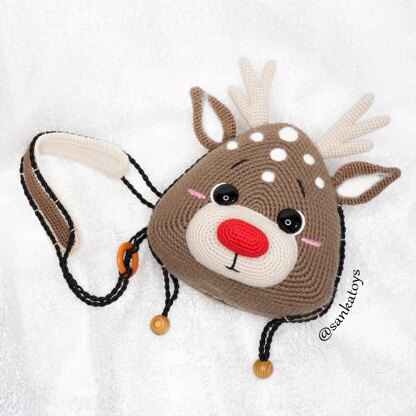 Yarn: I used: Pehorka New Kid’s (acrylic, 50g ~ 200m), colors: beige (№89), brown (№187); some red (№06) for the nose, bright pink (№11) embroider cheeks, black (№02) embroider eyebrows and mouth, white (№01) embroider a semicircle beside the eyes. You will also need some yarn Alize Kid Royal (kid mohair/polyamide, 50g ~ 500m) for the inside of the ears and spots.