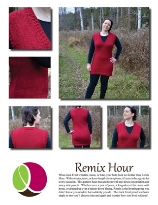 When Jack Frost whistles, hums, or bites your butt, look no further than Remix Hour. With sweater, tunic, or knee-length dress options, it's sure to be a go-to for every occasion. This pattern fuses fun and form with top-down construction and saucy side panels. Whether over a pair of jeans, a long-sleeved tee worn with boots, or dressed up over a button-down blouse, Remix is the layering piece you didn’t know you needed, but suddenly you do. This Jack Frost proof wardrobe staple is one you’ll choose time and again and wonder how you lived without!