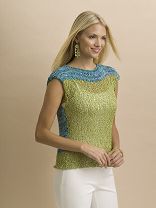 This top features two great spring yarns in a simple pattern, and can be worn with either side in front.