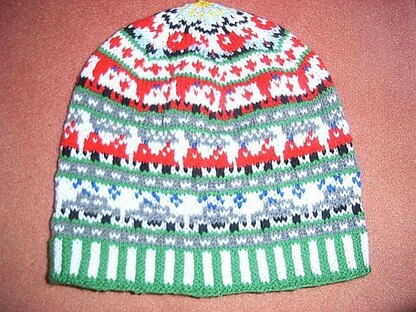 It is a happy multicolor rescue beanie. It has a two color ribbing, roads as border patterns, police cars, f