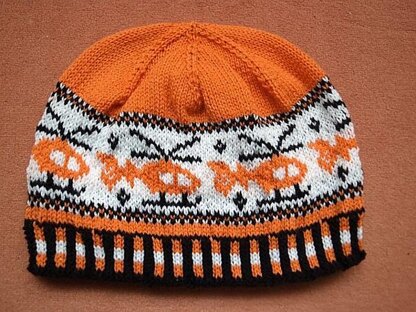 So the idea of making a hat for her boy in a more big boy's way was born and I could not get it out of my head. Driven by delight and joy I managed to knit it and sent it to her per mail. She phoned me and told me how great it is and that he loves it.