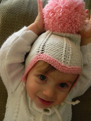 If you like vintage style for kids, try this retro bonnet pattern. Whimsical chevron edge design conveniently covers those precious ears, ties keep the baby from taking the hat off, and oversized pompom just adds to overall cuteness of this piece. It is also very stretchy and fits a wide range of head sizes perfectly. Change the color palette, omit the pompom, and you have a helmet hat for a boy!