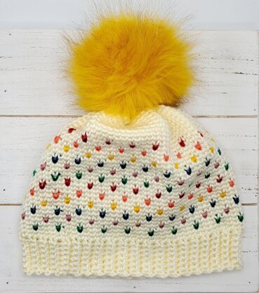 Retro style is so fun with it’s bright colors, so I’m bringing it back with my crochet Retro Hat. The hat is made in two steps: first, we crochet the ribbed brim in back-and-forth rows, and then the hat itself in rounds with colorful dots.