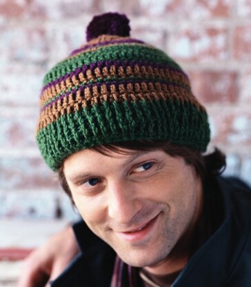 Retro Stripes Hat in Red Heart Soft - CTDec07-55