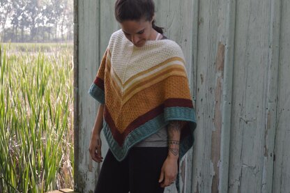 Retro Vibes is a fun triangular shawl knit up in colors that will bring you right back to the 60’s and 70’s! Knit from the top down, this shawl features different simple textured stitch patterns making for a varied and interesting design sure to keep your interest! The shawl features 5 colors of DK weight Berroco Ultra Wool yarn, making is a durable, and affordable project with endless color mixing potential!