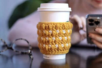 The Revel Coffee Cup Cozy .pdf Pattern includes: