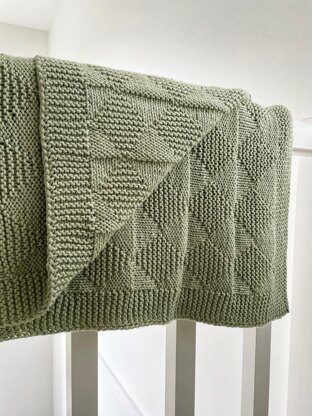 This cotton blanket features an original stitch pattern that makes it fully reversible (in that both sides are identical), so either side can be used randomly. It is an easy and meditative knit that uses only knit and purl stitches, so is suitable for an absolute beginner knitter. It features a garter stitch border with a central pattern of diamonds in three textured stitches (garter, stocking and reverse stocking stitch).