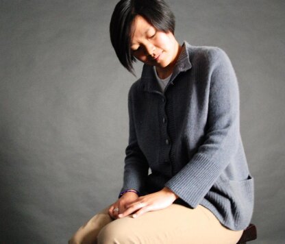 Chic, versatile reverso can be worn two ways — as a handsome, front-buttoning cardigan or fashionable, button-down-the-back pullover. Its A-line shape is flattering to almost any woman. Smart details include a dramatic button band, 3/4-length sleeves, and ample pockets. Unique in construction, reverso is knit from the top down in one piece with mock turtleneck, ribbed shoulders, and set-in sleeves. Simple rib stitch provides the structure, while stockinette stitch shows off the drape and softness of the velvety woolfolk yarn. Knitters who enjoy a challenge will delight in watching this garment unfold.