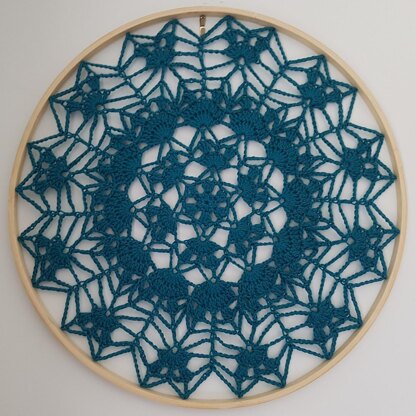 You will need to purchase a 33cm ring/hoop for this particular design. Be aware that the finished crochet circle will need to be stretched to fit the ring so that it doesn't sag. Others in this collection range through 15cm, 18cm, 20cm, 23cm, 26cm, 30cm and 33cm.