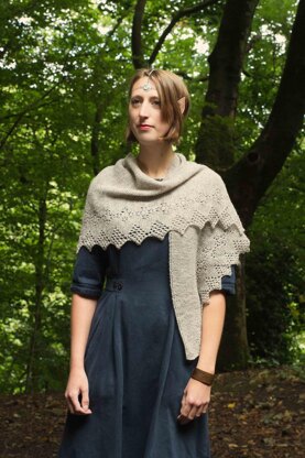 Named after my Nan, "Queenie", who loved to wear elegant shawls wrapped around her neck like royalty. This shawl is knit sideways and can be adapted to make full use of any skein of laceweight yarn.