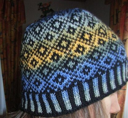Rhombicus ist eine "Fake"(Falsche) Fair Isle Mütze, die mit 4-fach Sockenwolle gestrickt ist. Man