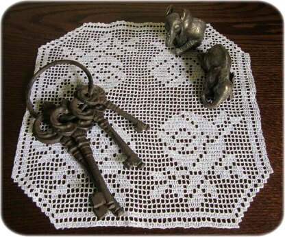 Approximate finished sizes: Large doily - 15-inches/37.5 cm square Small doily - 10½-inches/26.25 cm square