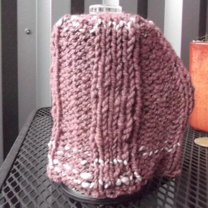 Keep your coffee or tea warm longer with a French press cozy. Quick to knit, these use less than 100 yards of yarn! The ribbing is great for showing off handspun yarn, and the ribbing draws in at the edges, making it one-size-fits-most for french presses.