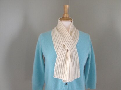 Enjoy the rhythm of 2x2 rib and the luxury of cashmere as you work this lightweight keyhole scarf, a comfortable stay-in-place style that looks good with everything.