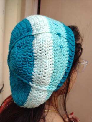The beanie is made with two (or more) colors of a size 2 sport weight yarn (approximately 150 meters/165 yards of color A, and 75 meters/82 yards of color B), with 4mm(US G-6) and 3mm(US D) hooks.