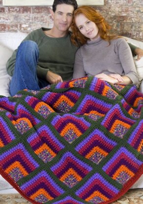 Rich Mitered Crochet Throw in Red Heart Super Saver Economy Solids - WR1743