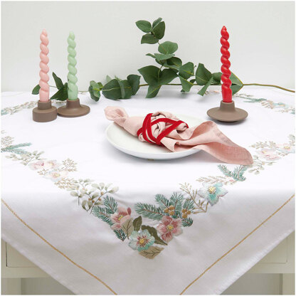 Embroidery kit Cloth Christmas rose, 90x90cm, traced, 65% PES, 34% CO, 1% metallized PESCloth, Threads, Needle, Pattern.