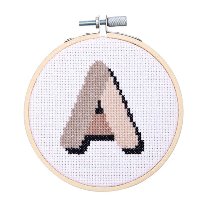 Mini embroidery kit alphabet, picture 10 cm, counted cross stitch. The Kit contains: Cutting even-weave fabric Aida 100% cotton, 16 count, embroidery thread 100% cotton, embroidery hoop 10 cm, embroidery needle, instructions.