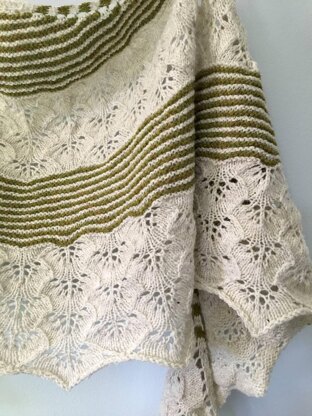 This crescent-shaped shawl is all about the feminine, elegant lace that spans the design in two tiers. The lace is anchored with garter stitch stripes to provide plenty of visual interest.