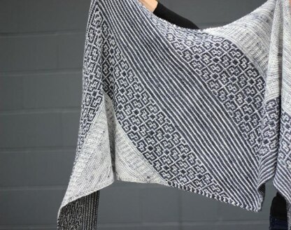 Ritchie is a parallelogram shaped wrap, knit seamlessly. It starts top-down and end up bottom-up! Combining innovative construction mosaic slipped stitch, texture and relaxing Garter, it is sure to please you on long fall evenings by the fire!