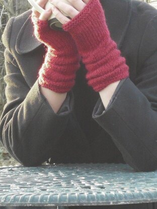 Knit in a round with DK weight yarn using a simple stitch pattern that creates great texture of those perfect looking gathers around the wrists. The pattern is written in two sizes to fit women's s/m and m/l, shown in a larger size with about 1 inch of negative ease.