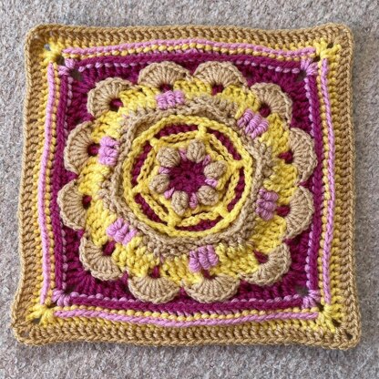 This square is compatible with Block a Month selected squares in that it should measure 12 inches if worked in Worsted Weight yarn, and has a stitch count of 39 sts per side.