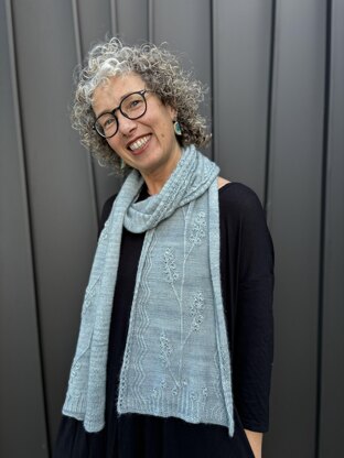 Every day I find inspiration and strength in nature, I love the way plants are perpetually looking for light and nourishment, persevere through adverse weather and know when it is the time to bloom. My scarf takes the knitter through a journey of growth, of starting again and making new connections, always with the reminder of the beauty of water and the way rivers bring communities together. The pattern is charted only, no written version for the stitch chart. It is however a very intuitive chart that looks a lot like the knitted fabric.