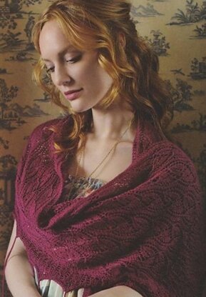 The main stitch in this stole is a classic – “Dayflower” – which is very pretty and fairly simple to knit. The borders are picked up and worked outwards include nupps which can easily be replaced by beads if you prefer. Do be sure to use a Stretchy Cast Off method as otherwise, it will be very difficult to establish the peaks. The fringes may be omitted or given extra definition with beads.