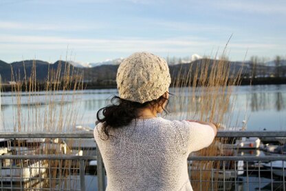 Fine cables at the top drip down and gather into increasingly deeper cables at the brim of this simple toque, something like how a river grows and grows as it moves down the mountains.