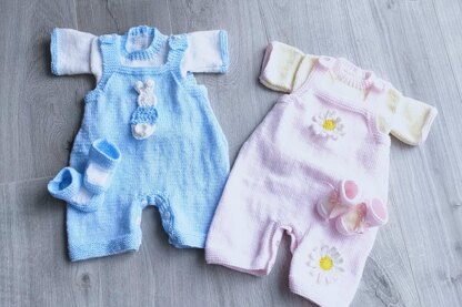 Size Guide: The pattern for Playsuit, Shirt Sleeved Sweater and Booties.