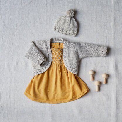Charming and contemporary, the Robyn Bolero & Hat set is a delightful knit for little ones from newborn to 24 months. Worked in stocking stitch with 2x2 rib edgings, this coordinated duo blends classic texture with modern simplicity.