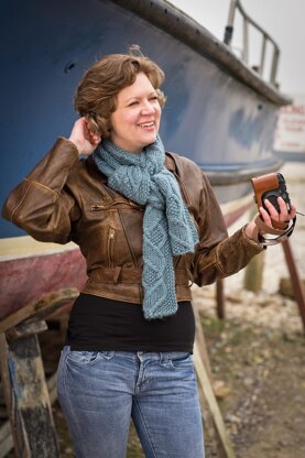 Twisting cables twine between moss stitch borders, giving this scarf serious snuggle value.
