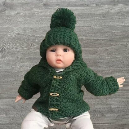 Create a cosy shawl collar cardigan and hat set worked seamlessly from the bottom up with no side seams, sized newborn to 10 years, with the hat worked from the top down. The sweater set is comfortable to wear and makes thoughtful handmade baby gifts.